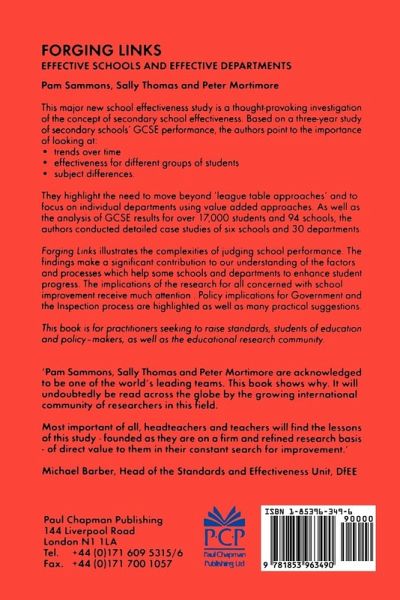`This book is a very useful text for anyone studying comparative education systems as well as those who seek to understand more fully the complexities and frustrations that lie beneath the underuse of the leadership skills and talents of women in schools, colleges and higher education in a number of European contexts: England and Wales, France, The Federal Republic of Germany, Greece, Hungary, Ireland, Italy, The Netherlands, Norway and Spain' - School Leadership & Management `There are few books of which one can say 'all secondary teachers and governors should read this book' but this is one of them. I would recommend it to primary colleagues too....Its messages about school effectiveness can uniquely be applied to school improvement because there is data about how the same children fared under different regimes in different subject areas in the same school' - School Leadership & Management This major new school effectiveness study is a thought-provoking investigation of the concept of secondary school effectiveness. Based on a three-year study of secondary schools' GCSE performance, the authors point to the importance of looking at: trends over time; effectiveness for different groups of students; and subject differences. They highlight the importance of moving beyond 'league table approaches' and the need to focus on individual departments using value-added approaches. Forging Links illustrates the complexities of judging school performance. The findings make a significant contribution to our understanding of the factors and processes which help some schools and departments to enhance student progres