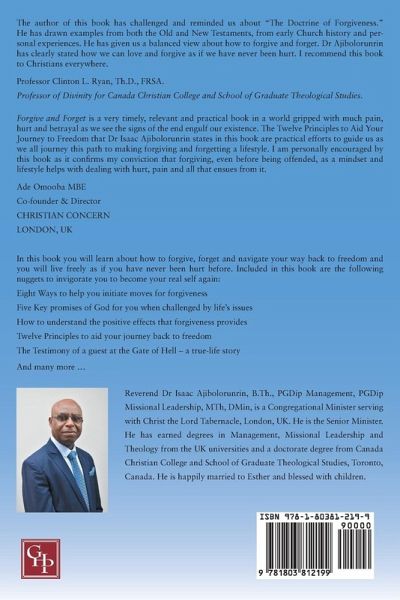 The world is full of wickedness, crime, anger, depressed people, sin, deception, hate and many more! Many a times the victims don't deserve what they have been going through. There is need for a change - we need a society filled with love, peace, compassion, hope and restoration. This book entitled, Forgive & Forget - God's Love towards Mankind, reminds us about the power of love, peace, repentance, prayer, pardon, faith in God, and how repentance, reconciliation and restoration of relationships can transform lives, homes, communities and nations. Not the least, this book provides concepts that empower the offended to forgive anyone who hurt or caused them some pain, exactly as God treats mankind out of love and compassion. To be candid, forgiveness is one of the difficult issues of life. You really have to be strong in order to forgive completely, forget and move on as if you were not hurt. It can look impossible, but in the book you will gain some helpful insights, wisdom and top secrets including: Eight ways to help you initiate moves for forgiveness. Five key promises of God for you when challenged by life's issues. How to understand the positive effects that forgiveness provides. Twelve principles to aid your journey back to freedom. The author is able to offer the principles, concepts and proposals contained in the book as a result of over twenty years experience in pastoral ministry and his involvement in other Christian work. You have the power to forgive whatever you can remember happened to you, bear in mind that just as the incident has a beginning, so it has an ending. But you have to be ready to embark on 'this journey' fully determined to forgive and forget and take back your life. You might be wondering where and how to start? Who should be involved and what it should entail? As to the question of when? Do not delay, the more you do that, the more the intensity of the pain, anger, frustration, you might become unwilling to forgive and all this can cause more harm than good. What to do? It's very simple, get your copy, read and start to empower yourself back to emotional, mental and all-round freedom.