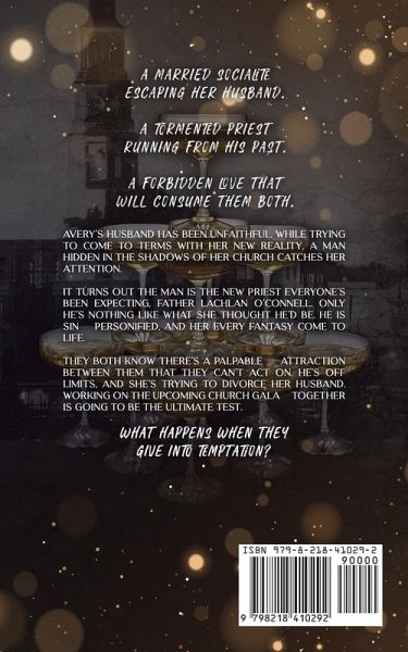 A married socialite escaping her husband. A tormented priest running from his past. A forbidden love that will consume them both. Avery's husband has been unfaithful. While trying to come to terms with her new reality, a man hidden in the shadows of her church catches her attention. It turns out the man is the new priest everyone's been expecting, Father Lachlan O'Connell. Only he's nothing like what she thought he'd be. He is sin personified, and her every fantasy come to life. They both know there's a palpable attraction between them that they can't act on. He's off-limits, and she's trying to divorce her husband. Working on the upcoming church gala together is going to be the ultimate test. What happens when they give into temptation?