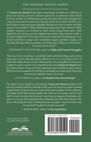 Forgive the Animal, the luminous and stunning debut collection from Sarah Pape, explores rural poverty, sexual abuse and its reverberations, young motherhood, and the path back to oneself through forgiveness of the self and others. With environmental collapse, too, as both metaphor and reality, Pape's poems seek to understand a future after surviving multiple shattering events, in both the personal and collective experiences of great loss.