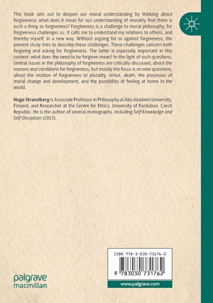 This book sets out to deepen our moral understanding by thinking about forgiveness: what does it mean for our understanding of morality that there is such a thing as forgiveness? Forgiveness is a challenge to moral philosophy, for forgiveness challenges us: it calls me to understand my relations to others, and thereby myself, in a new way. Without arguing for or against forgiveness, the present study tries to describe these challenges. These challenges concern both forgiving and asking for forgiveness. The latter is especially important in this context: what does the need to be forgiven mean? In the light of such questions, central issues in the philosophy of forgiveness are critically discussed, about the reasons and conditions for forgiveness, but mostly the focus is on new questions, about the relation of forgiveness to plurality, virtue, death, the processes of moral change and development, and the possibility of feeling at home in the world.