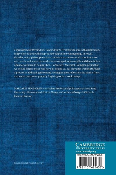 Forgiveness and Retribution: Responding to Wrongdoing argues that ultimately, forgiveness is always the appropriate response to wrongdoing. In recent decades, many philosophers have claimed that unless certain conditions are met, we should resent those who have wronged us personally and that criminal offenders deserve to be punished. Conversely, Margaret Holmgren posits that we should forgive those who have ill-treated us, but only after working through a process of addressing the wrong. Holmgren then reflects on the kinds of laws and social practices a properly forgiving society would adopt.
