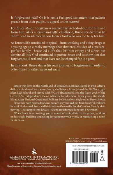 Is forgiveness real? Or is it just a feel-good statement that pastors preach from their pulpits to appeal to the masses? For Bruce Major, forgiveness seemed farfetched-both for him and from him. After a less-than-idyllic childhood, Bruce decided that he didn't need to ask forgiveness from a God Who was too busy for him. As Bruce's life continued to spiral-from smoking and doing drugs at a young age to a rocky marriage that shattered his idea of a picture-perfect family-Bruce led a life that left him empty and alone. But despite all this, God continued to pursue Bruce and to show him that forgiveness IS real and that lives can be changed for the good. In this book, Bruce shares his own journey to forgiveness in order to offer hope for other wayward souls.