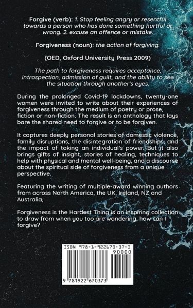 Forgive (verb): 1. Stop feeling angry or resentful towards a person who has done something hurtful or wrong. 2. excuse an offence or mistake. Forgiveness (noun): the action of forgiving. (OED, Oxford University Press 2009) The path to forgiveness requires acceptance, introspection, admission of guilt, and the ability to see the situation through another's eyes. During the prolonged Covid-19 lockdowns, twenty-one women were invited to write about their experiences of forgiveness through the medium of poetry or prose, fiction or non-fiction. The result is an anthology that lays bare the shared need to forgive or to be forgiven. It captures deeply personal stories of domestic violence, family disruptions, the disintegration of friendships, and the impact of taking an individual's power. But it also brings gifts of insight, stories of healing, techniques to help with physical and mental well-being, and a discourse about the spiritual side of forgiveness from a unique perspective. Featuring the writing of multiple-award winning authors from across North America, the UK, Ireland, NZ and Australia, Forgiveness is the Hardest Thing is an inspiring collection to draw from when you too are wondering, how can I forgive?