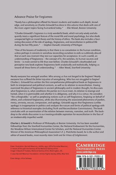 Prologue 1. Forgiveness ancient and modern 2. Forgiveness at its best 3. Imperfect forgiveness 4. Political apology, forgiveness, and reconciliation 5. Truth, memory, and reconciliation without apology.