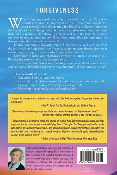 What is forgiveness really, and why do we resist it so often? Why does it work when it works, and why does it fail?¿ Forgiveness may be the most powerful path for creating the life of your dreams, but most likely, you have never thought of it as a way to manifest wealth-and not only that, but to experience abundance in every area of your life. Jania Aebi guides you, step by step, to once and for all heal your entire life with forgiveness, so that you can take it to a whole new level. In this innovative approach, you will discover the well-kept secret of the four levels of forgiveness, the five most common signs that forgiveness is needed, and the top five reasons why forgiveness seems to fail. Learn how to make your challenges work for you instead of against you. Become the person you've always longed to be. There really is a whole new world waiting for you-a world of peace and joy, and of power and freedom like you've never known! And forgiveness is the key! This book will allow you to: Understand why you need to forgive Learn who and what most needs forgiveness (It's not what you think!) Discover how forgiving heals every area of your life Figure out how to make your life work at last!