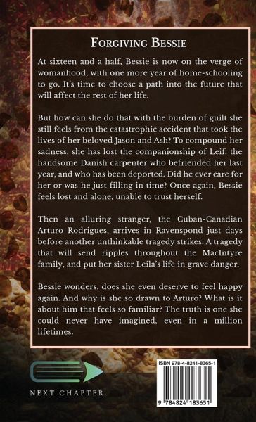 At sixteen and a half, Bessie is now on the verge of womanhood, with one more year of home-schooling to go. It's time to choose a path into the future that will affect the rest of her life. But how can she do that with the burden of guilt she still feels from the catastrophic accident that took the lives of her beloved Jason and Ash? To compound her sadness, she has lost the companionship of Leif, the handsome Danish carpenter who befriended her last year, and who has been deported. Did he ever care for her or was he just filling in time? Once again, Bessie feels lost and alone, unable to trust herself. Then an alluring stranger, the Cuban-Canadian Arturo Rodrigues, arrives in Ravenspond just days before another unthinkable tragedy strikes. A tragedy that will send ripples throughout the MacIntyre family, and put her sister Leila's life in grave danger. Bessie wonders, does she even deserve to feel happy again. And why is she so drawn to Arturo? What is it about him that feels so familiar? The truth is one she could never have imagined, even in a million lifetimes.
