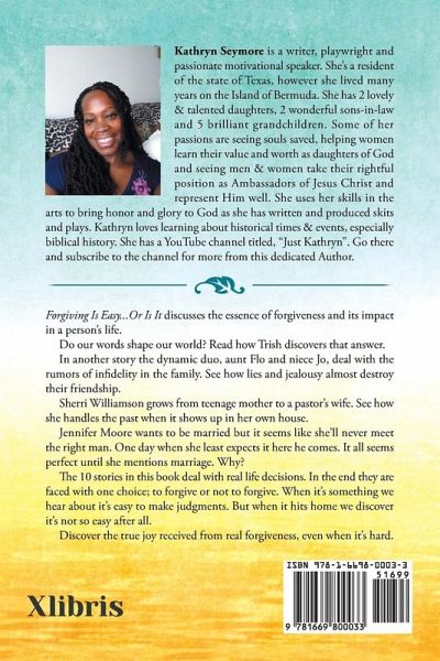 Forgiving Is Easy...Or Is It discusses the essence of forgiveness and its impact in a person's life. Do our words shape our world? Read how Trish discovers that answer. In another story the dynamic duo, aunt Flo and niece Jo, deal with the rumors of infidelity in the family. See how lies and jealousy almost destroy their friendship. Sherri Williamson grows from teenage mother to a pastor's wife. See how she handles the past when it shows up in her own house. Jennifer Moore wants to be married but it seems like she'll never meet the right man. One day when she least expects it here he comes. It all seems perfect until she mentions marriage. Why? The 10 stories in this book deal with real life decisions. In the end they are faced with one choice; to forgive or not to forgive. When it's something we hear about it's easy to make judgments. But when it hits home we discover it's not so easy after all. Discover the true joy received from real forgiveness, even when it's hard.