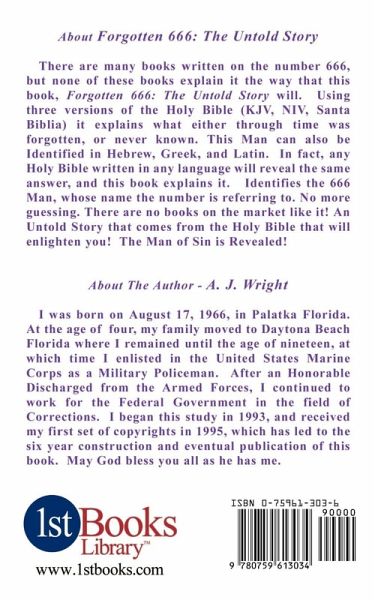 This book explains what has been forgotten and possibly never known about the number of 666. There are no books on the market that tell this story. The book explains who the 666 Man really is according to biblical scripture.