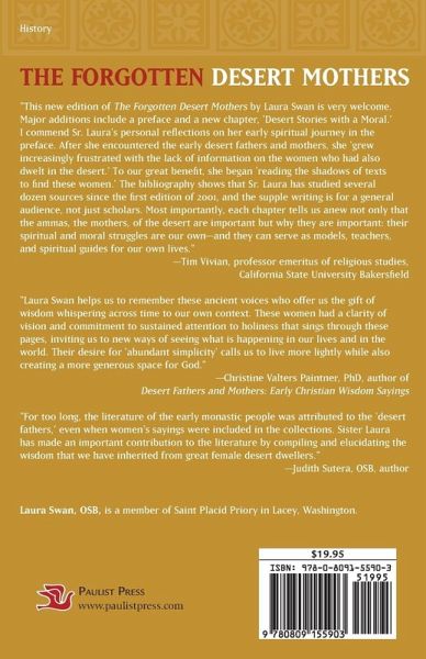 In The Forgotten Desert Mothers, Second Edition, Laura Swan introduces readers to the sayings, lives, stories, and spirituality of women in the early Christian desert and monastic movement, from the third century on. In doing so, she finally sets the record straight that women played an important and influential role in early Christianity, indeed a role that has been long overshadowed by men. She begins with an exploration of the historical context and spirituality of the desert ascetics. Then she weaves together the sayings of the major desert ammas, or mothers, along with commentary that invites readers to reflect on their own spiritual journey as they share their wisdom. The book then journeys between desert, monastery and city to reveal the stories of ascetics and solitaries whose stories are rarely heard, organized in the author's own alphabetical collection. This book demonstrates, like no other work, that women have long had a history of leadership in Christianity. This engaging, eye-opening, and insightful work targets all faith seekers looking to reclaim the history and spirituality of the women who came before them, as well as to understand their own inner journey. It will be a welcome addition to courses on early church history, women's studies, and religious studies. +