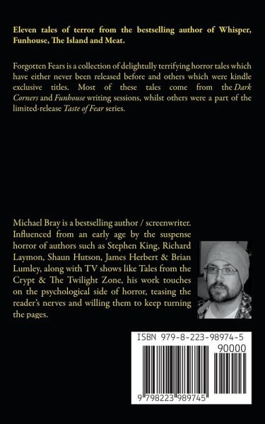 Eleven tales of terror from the bestselling author of Whisper, Funhouse, The Island and Meat. Forgotten Fears is a collection of delightully terrifying horror tales which have either never been released before and others which were kindle exclusive titles. Most of these tales come from the Dark Corners and Funhouse writing sessions, whilst others were a part of the limited-release Taste of Fear series.