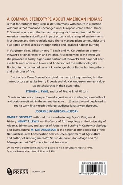 A common stereotype about American Indians is that for centuries they lived in stataic harmony with nature in a pristine wilderness that remained unchanged until European colonization. Omer C. Stewart was one of the first anthropologists to recognize that Native Americans made significant impact across a wide range of environments. Most important, they regularly used fire to manage plant communities and associated animal species through varied and localized habitat burning. In Forgotten Fires, editors Henry T. Lewis and M. Kat Anderson present Stewart's original research and insights, presented in the 1950s yet still provocative today. Significant portions of Stewart's text have not been available until now, and Lewis and Anderson set Stewart's findings in the context of current knowledge about Native hunter-gathers and their uses of fire. This volume shows that for thousands of years, the North American landscape has been regularly shaped and renewed by the land and fire management practices of North American Indians. Omer C. Stewart received the Ph.D. from the University of California, Berkeley, as a student of A. L. Kroeber, Robert H. Lowie, and Carl Sauer. No non-Indian knew the Native American Church and its history better than he. Henry T. Lewis was Professor of Anthropology at the University of Alberta, Edmonton, and author of Patterns of Burning in California: Ecology and Ethnohistory. M. Kat Anderson is the national ethnoecologist of the Natural Resources Conservation Service, U.S. Department of Agriculture, and author of Tending the Wild: Native American Knowledge and the Management of California's Natural
