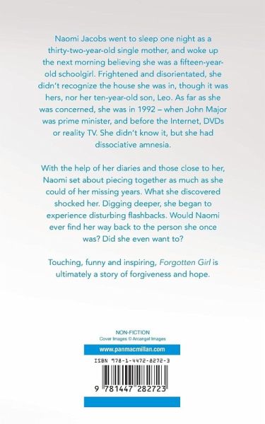 Naomi Jacobs went to sleep one night in 2008 as a 32-year-old mother, and woke up the next morning believing she was a fifteen-year-old school girl. She did not recognise the house she woke up in, though it was hers, nor her ten-year-old son, Leo. As far as she was concerned, she was in 1992 when John Major was Prime Minister, before the world had been blessed with mobile phones, DVDs or reality TV. She didn't know it, but she had dissociative amnesia.