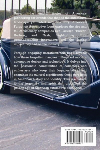 Unearth the untold stories of America's pioneering car brands that shaped the automotive landscape yet faded into obscurity. America's Forgotten Automotive Icons explores the rise and fall of visionary companies like Packard, Tucker, Hudson, and Nash, highlighting their groundbreaking innovations and the lasting impact they had on the industry. Through engaging narratives, this book reveals how these forgotten marques influenced modern automotive design and technology. It delves into the passionate communities of collectors and enthusiasts who keep their legacies alive, and examines the cultural significance these cars hold in American history and identity. This is a tribute to the ingenuity and spirit that propelled the golden age of American automotive excellence.