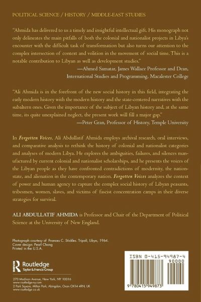 "Ahmida has delivered to us a timely and insightful intellectual gift. His monograph not only delineates the main pitfalls of both the colonial and nationalist projects in Libya's encounter with the difficult task of transformation but also turns our attention to the complex intersection of context and volition in the movement of social time. This is a notable contribution to Libyan as well as development studies.