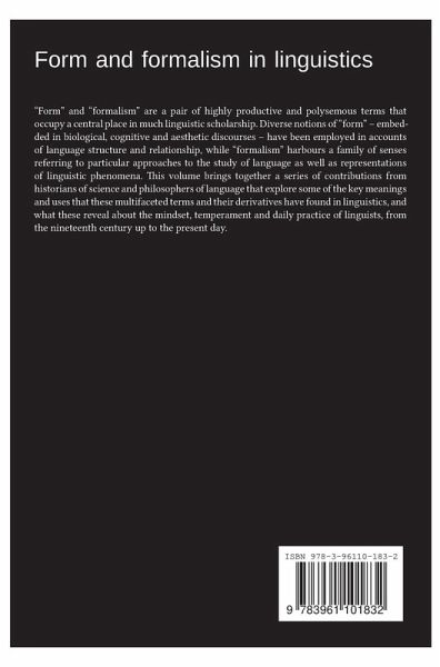 "Form" and "formalism" are a pair of highly productive and polysemous terms that occupy a central place in much linguistic scholarship. Diverse notions of "form" ¿ embedded in biological, cognitive and aesthetic discourses ¿ have been employed in accounts of language structure and relationship, while "formalism" harbours a family of senses referring to particular approaches to the study of language as well as representations of linguistic phenomena. This volume brings together a series of contributions from historians of science and philosophers of language that explore some of the key meanings and uses that these multifaceted terms and their derivatives have found in linguistics, and what these reveal about the mindset, temperament and daily practice of linguists, from the nineteenth century up to the present day.