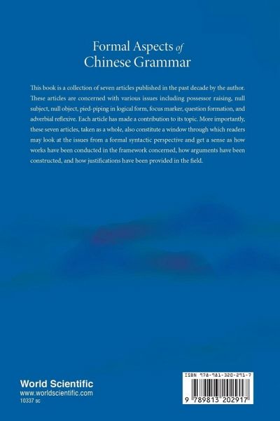 This book is a collection of seven articles published in the past decade by the author. These articles are concerned with various issues including possessor raising, null subject, null object, pied-piping in logical form, focus marker, question formation, and adverbial reflexive. Each article has made a contribution to its topic. More importantly, these seven articles, taken as a whole, also constitute a window through which readers may look at the issues from a formal syntactic perspective and get a sense as how works have been conducted in the framework concerned, how arguments have been constructed, and how justifications have been provided in the field.
