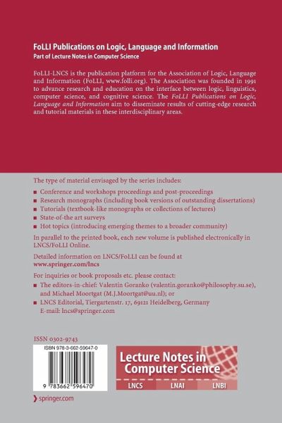 The 7 full papers presented were carefully reviewed and selected from 11 submissions. They present new and original research on formal grammar, mathematical linguistics, and the application of formal and mathematical methods to the study of natural language and focus on topics such as formal and computational phonology, morphology, syntax, semantics, and pragmatics; model-theoretic and proof-theoretic methods in linguistics; logical aspects of linguistic structure; constraint-based and resource-sensitive approaches to grammar; learnability of formal grammar; integration of stochastic and symbolic models of grammar; foundational, methodological, and architectural issues in grammar and linguistics; and mathematical foundations of statistical approaches to linguistic analysis.