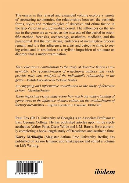 The essays in this volume explore a variety of structuring taxonomies, the relationships between the aesthetic forms, styles and methodologies of detective and crime fiction in the late-Victorian and Edwardian period. The influences on the artists in the genre are as varied as the interests of the period in scientific method, forensics, archaeology, aesthetics, medicine, and the paranormal. But the formalizing tendencies of investigative process remain, and it is this adherence, in artist and detective alike, to seeing crime and its resolution as a stylistic imposition of structure on disorder that is under examination.