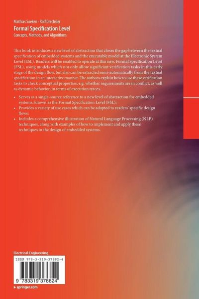This book introduces a new level of abstraction that closes the gap between the textual specification of embedded systems and the executable model at the Electronic System Level (ESL). Readers will be enabled to operate at this new, Formal Specification Level (FSL), using models which not only allow significant verification tasks in this early stage of the design flow, but also can be extracted semi-automatically from the textual specification in an interactive manner. The authors explain how to use these verification tasks to check conceptual properties, e.g. whether requirements are in conflict, as well as dynamic behavior, in terms of execution traces.
