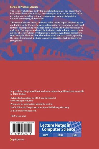 The security issues set by the global digitization of our society have had, and will continue to have, a crucial impact at all levels of our social organization, including, just to mention a few, privacy, economics, environmental policies, national sovereignty, medical environments. The importance of the collaborations in the various ?elds of computer s- ence to solve these problems linked with other sciences and techniques is clearly recognized. Moreover, the collaborative work to bridge the formal theory and practical applications becomes increasingly important and useful. In this context, and since France and Japan have strong academic and ind- trial backgrounds in the theory and practice of the scienti?c challenges set by this digitized world, in 2005 we started a formal French-Japanese collaboration and workshop series on computer security. The three ?rst editions of these French-Japanese Computer Security wo- shops in Tokyo, September 5-7, 2005 and December 4-5, 2006 and inNancy, March 13-14, 2008 were very fruitful and were accompanied by several imp- tant research exchanges between France and Japan. Because of this success, we launched a call for papers dedicated to computer security from it's foundation to practice, with the goal of gathering together ?nal versions of the rich set of papers and ideas presented at the workshops, yet opening the call to everyone interested in contributing in this context. This v- ume presents the selection of papers arising from this call and this international collaboration.