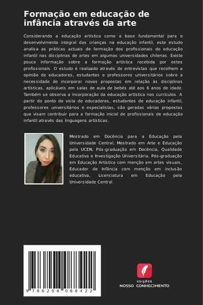 Considerando a educação artística como a base fundamental para o desenvolvimento integral das crianças na educação infantil, este estudo analisa as práticas actuais de formação dos profissionais de educação infantil nas disciplinas de artes em algumas universidades chilenas. Existe pouca informação sobre a formação artística recebida por estes profissionais. O estudo é realizado através de entrevistas que recolhem a opinião de educadores, estudantes e professores universitários sobre a necessidade de incorporar novas propostas em relação às disciplinas artísticas, aplicáveis em salas de aula de bebés até aos 6 anos de idade. Também se observa a incorporação da educação artística nos currículos. A partir do ponto de vista de educadores, estudantes de educação infantil, professores universitários e especialistas, são geradas várias propostas que visam contribuir para a formação inicial de profissionais de educação infantil através das linguagens artísticas.