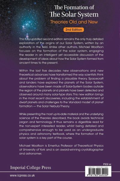 This fully-updated second edition remains the only truly detailed exploration of the origins of our Solar System, written by an authority in the field. Unlike other authors, Michael Woolfson focuses on the formation of the solar system, engaging the reader in an intelligent yet accessible discussion of the development of ideas about how the Solar System formed from ancient times to the present. Within the last five decades new observations and new theoretical advances have transformed the way scientists think about the problem of finding a plausible theory. Spacecraft and landers have explored the planets of the Solar System, observations have been made of Solar-System bodies outside the region of the planets and planets have been detected and observed around many solar-type stars. This new edition brings in the most recent discoveries, including the establishment of dwarf planets and challenges to the ‘standard model’ of planet formation — the Solar Nebula Theory. While presenting the most up-to-date material and the underlying science of the theories described, the book avoids technical jargon and terminology. It thus remains a digestible read for the non-expert interested reader, whilst being detailed and comprehensive enough to be used as an undergraduate physics and astronomy textbook, where the formation of the solar system is a key part of the course. Michael Woolfson is Emeritus Professor of Theoretical Physics at University of York and is an award-winning crystallographer and astronomer.