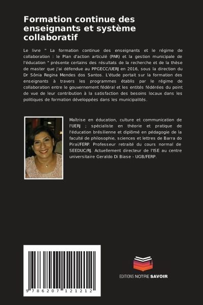 Le livre " La formation continue des enseignants et le régime de collaboration : le Plan d'action articulé (PAR) et la gestion municipale de l'éducation " présente certains des résultats de la recherche et de la thèse de master que j'ai défendue au PPGECC/UERJ en 2016, sous la direction du Dr Sônia Regina Mendes dos Santos. L'étude portait sur la formation des enseignants à travers les programmes établis par le régime de collaboration entre le gouvernement fédéral et les entités fédérées du point de vue de leur contribution à la satisfaction des besoins locaux dans les politiques de formation développées dans les municipalités.