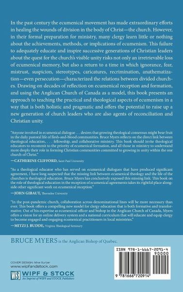 In the past century the ecumenical movement has made extraordinary efforts in healing the wounds of division in the body of Christ--the church. However, in their formal preparation for ministry, many clergy learn little or nothing about the achievements, methods, or implications of ecumenism. This failure to adequately educate and inspire successive generations of Christian leaders about the quest for the church's visible unity risks not only an irretrievable loss of ecumenical memory, but also a return to a time in which ignorance, fear, mistrust, suspicion, stereotypes, caricatures, recrimination, anathematization--even persecution--characterized the relations between divided churches. Drawing on decades of reflection on ecumenical reception and formation, and using the Anglican Church of Canada as a model, this book presents an approach to teaching the practical and theological aspects of ecumenism in a way that is both holistic and pragmatic and offers the potential to raise up a new generation of church leaders who are also agents of reconciliation and Christian unity.