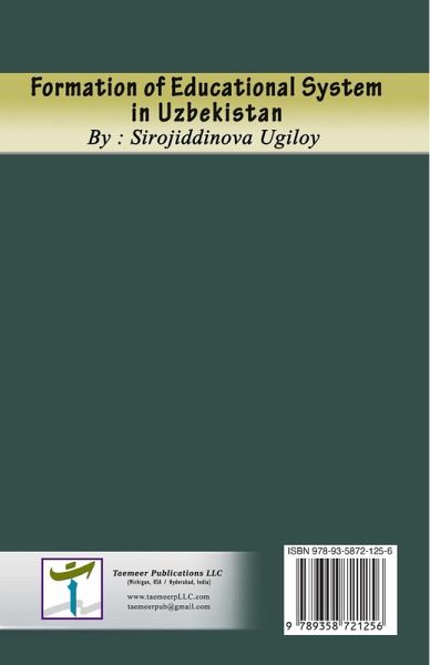 This book "Formation of Educational System in Uzbekistan" is a collection of research articles by Sirojiddinova Ugiloy, a scholar from Uzbekistan. It contains few essays comprising the topics of poetry, lyrics, short story, novel, nature, New Uzbekistan, education system,quality of education,national anthem, boxing, Turkestan etc.