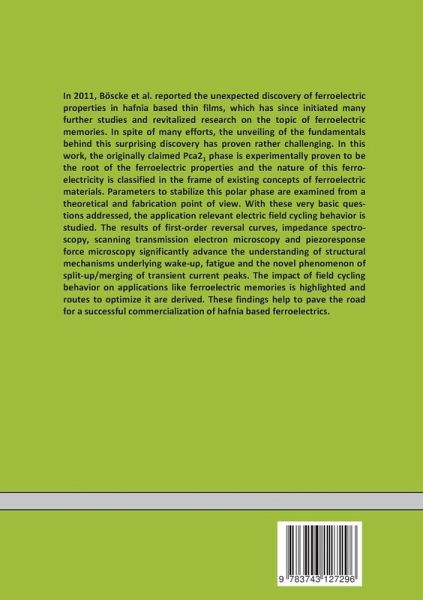 In 2011, Böscke et al. reported the unexpected discovery of ferroelectric properties in hafnia based thin films, which has since initiated many further studies and revitalized research on the topic of ferroelectric memories. In spite of many efforts, the unveiling of the fundamentals behind this surprising discovery has proven rather challenging. In this work, the originally claimed Pca21 phase is experimentally proven to be the root of the ferroelectric properties and the nature of this ferroelectricity is classified in the frame of existing concepts of ferroelectric materials. Parameters to stabilize this polar phase are examined from a theoretical and fabrication point of view. With these very basic questions addressed, the application relevant electric field cycling behavior is studied. The results of first-order reversal curves, impedance spectroscopy, scanning transmission electron microscopy and piezoresponse force microscopy significantly advance the understanding of structural mechanisms underlying wake-up, fatigue and the novel phenomenon of split-up/merging of transient current peaks. The impact of field cycling behavior on applications like ferroelectric memories is highlighted and routes to optimize it are derived. These findings help to pave the road for a successful commercialization of hafnia based ferroelectrics.