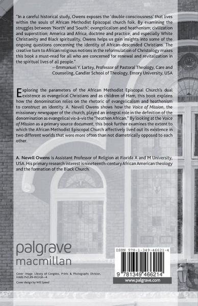 "In a careful historical study, Owens exposes the 'double consciousness' that lives within the souls of African Methodist Episcopal church folk. By examining the struggles between 'North' and 'South;' evangelicalism and heathenism; civilization and superstition; America and Africa; doctrine and practice; and especially White Christianity and Black spirituality, Owens helps us gain insights into some of the ongoing questions concerning identity of African-descended Christians. The creative turn to African religious notions in the re-formulation of Christology makes this book a must-read for all who are concerned for renewal and re-vitalization in the spiritual lives of all people." - Emmanuel Y. Lartey, Professor of Pastoral Theology, Care and Counseling, Candler School of Theology, Emory University, USA