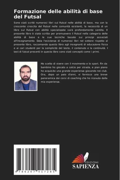 Sono stati scritti numerosi libri sul Futsal nelle abilità di base, ma con la crescente crescita del Futsal nelle comunità esistenti, la necessità di un libro sul Futsal con abilità specializzate sarà profondamente sentita. Il presente libro è stato scritto per promuovere il Futsal nella categoria delle abilità di base e le sue tecniche basate sui principi associati all'insegnamento. Data l'esistenza di numerosi libri nel settore rispetto al presente libro, raccomando questo libro agli insegnanti di educazione fisica e ai cari studenti per la semplicità del testo, il contenuto e la continuità. I test di futsal presenti in questo libro sono stati concepiti come i primi.