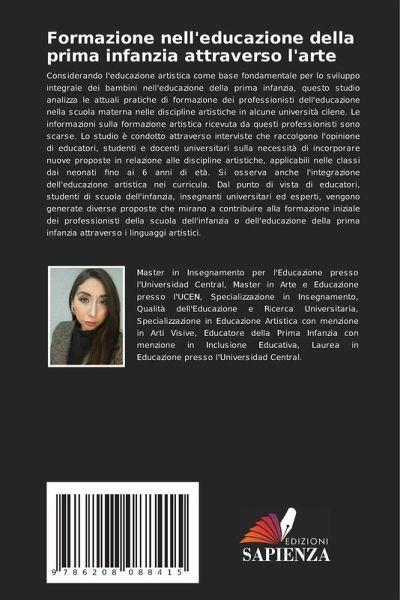 Considerando l'educazione artistica come base fondamentale per lo sviluppo integrale dei bambini nell'educazione della prima infanzia, questo studio analizza le attuali pratiche di formazione dei professionisti dell'educazione nella scuola materna nelle discipline artistiche in alcune università cilene. Le informazioni sulla formazione artistica ricevuta da questi professionisti sono scarse. Lo studio è condotto attraverso interviste che raccolgono l'opinione di educatori, studenti e docenti universitari sulla necessità di incorporare nuove proposte in relazione alle discipline artistiche, applicabili nelle classi dai neonati fino ai 6 anni di età. Si osserva anche l'integrazione dell'educazione artistica nei curricula. Dal punto di vista di educatori, studenti di scuola dell'infanzia, insegnanti universitari ed esperti, vengono generate diverse proposte che mirano a contribuire alla formazione iniziale dei professionisti della scuola dell'infanzia o dell'educazione della prima infanzia attraverso i linguaggi artistici.