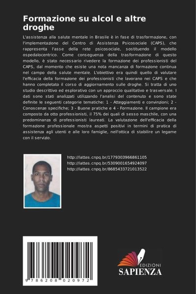 L'assistenza alla salute mentale in Brasile è in fase di trasformazione, con l'implementazione del Centro di Assistenza Psicosociale (CAPS), che rappresenta l'asse della rete psicosociale, sostituendo il modello ospedalocentrico. Come conseguenza della trasformazione di questo modello, è stato necessario rivedere la formazione dei professionisti del CAPS, dal momento che esiste una nota mancanza di formazione continua nel campo della salute mentale. L'obiettivo era quindi quello di valutare l'efficacia della formazione dei professionisti che lavorano nei CAPS e che hanno completato il corso di aggiornamento sulle droghe. Si tratta di uno studio descrittivo ed esplorativo con un approccio qualitativo e trasversale. I dati sono stati analizzati utilizzando l'analisi del contenuto e sono state definite le seguenti categorie tematiche: 1 - Atteggiamenti e convinzioni; 2 - Conoscenze specifiche; 3 - Buone pratiche e 4 - Formazione. Il campione era composto da otto professionisti, il 75% dei quali di sesso maschile, con una predominanza di professionisti laureati. La valutazione dell'efficacia della formazione professionale mostra aspetti positivi in termini di pratica di assistenza agli utenti e alle loro famiglie, nell'ottica di stabilire un legame con il servizio.