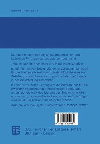 Jeder Lemende und auch jeder Anwender der Mathematik wird gem auf eine Formelsamm lung oder auf einen Wissensspeicher zurückgreifen. urn Fakten zu überprüfen, wenn das Ge dächtnis überfordert ist, oder urn neue Informationen zu erhalten. Der vorliegende Band ent hält neben grundlegenden mathematischen Formeln auch verbal beschriebenes Wissen. nämlich zentrale Definitionen und Sätze ausgewählter mathematischer Fachgebiete. Zielgruppe sind vor allem Studierende an Universitäten und Fachhochschulen. die mit der Ma thematik konfrontiert sind. Deshalb wurde der Inhalt dieses Bandes der Reihe "Mathematik fiir Ingenieure und Naturwissenschaftler" streng auf die Anforderungen des Grundstudiums in in genieurwissenschaftlichen Studiengängen ausgerichtet. In Verbindung mit dem Besuch von Vorlesungen und Seminaren, der Arbeit mit Lehrbüchem und der Nutzung mathematischer Software wird diese Sammlung von Grundwissen der Höheren Mathematik sowohl dem Ler nenden als auch dem Ingenieur in der Praxis hilfreich sein. Bei der Arbeit am Manuskript haben mich viele Mathematiker beraten. Mein Dank gilt zuerst den Herausgebem der Reihe, von denen ich konstruktive Hinweise erhieh, insbesondere Herm Prof. eh. Gro6mann und Herrn Prof. K Manteuffel.