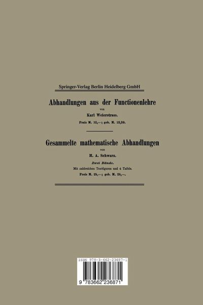 einer solchen Sammlung sehr oft genügt, die Methode der Herleitung der einzelnen Formelsysteme anzugeben, ohne dass es nöthig ist, auf die Einzel heiten der Rechnung näher einzugehen oder sämmtliche Formeln vollständig zu entwickeln. Diese Erwägungen haben mich zur Bearbeitung und zur Herausgabe der vorliegenden Sammlung veranlasst. Ausser Formeln und Lehrsätzen zum Ge brauche der elliptischen Functionen, welche sich auf die neuen Normalformen beziehen, enthält dieselbe in Rücksicht auf die Anforderungen despraktischen Bedürfnisses ein ausgedehntesSystem vonFormeln, mit deren Hülfe der Ueber gang von der alten zu der neuen Bezeichnungsweise ausgefiihrt werden kann. Bei der Herstellung dieser Formelsammlung habe ich mich der thätigen Mitarbeit des HerrnWeierstrass zu erfreuen gehabt; kein Bogen der ersten Ausgabe ist ohne die Billigung desselben gedruckt worden. Die meisten der aufgenommenen Formeln sind, wie schon auf dem Titel angegeben ist, Vorlesungen oder schriftlichen Aufzeichnungen des Herrn Weierstrass entnommen; einige Formeln aber sind mit Rücksicht auf das praktische Bedürfniss erst für diese Sammlung ausgearbeitet worden. Die im Art. 15 (Seite 19) mitgetheilte Formel für die Function ~n~l~:~ .