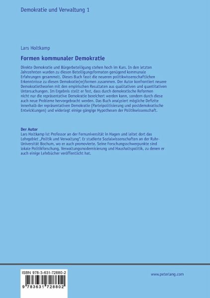 Direkte Demokratie und Bürgerbeteiligung stehen hoch im Kurs. In den letzten Jahrzehnten wurden zu diesen Beteiligungsformaten genügend kommunale Erfahrungen gesammelt. Dieses Buch fasst die neueren politikwissenschaftlichen Erkenntnisse zu diesen Demokratie(re)formen zusammen. Der Autor konfrontiert neuere Demokratietheorien mit den empirischen Resultaten aus qualitativen und quantitativen Untersuchungen. Im Ergebnis stellt er fest, dass durch demokratische Reformen nicht nur die repräsentative Demokratie bereichert werden kann, sondern durch diese auch neue Probleme hervorgebracht werden. Das Buch analysiert mögliche Defizite innerhalb der repräsentativen Demokratie (Parteipolitisierung und postdemokratische Entwicklungen) und widerlegt einige gängige Hypothesen der Politikwissenschaft.