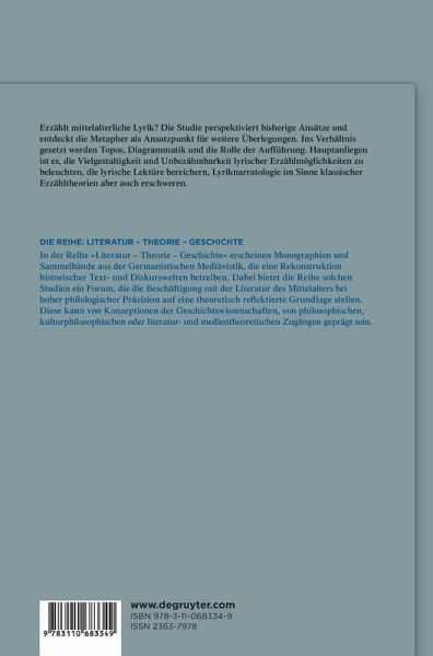 Die Studie untersucht, ob und wie Lyrik erzählt. Dazu werden die bisherigen Versuche einer Lyriknarratologie gesammelt, strukturiert und perspektiviert. Die Metapher kristallisiert sich mithilfe ihres lyrisch zentrierten Erbes und der Arbeiten Wolf Schmids schnell als Ansatzpunkt für weitere Überlegungen heraus. Ins Verhältnis gesetzt werden u.a. der mit einem reichen rhetorischen Erbe behafteten Topos, die forschungsgeschichtlich junge Diagrammatik und die Rolle der Aufführung in narratologischen Kontexten. Hauptanliegen ist es insbesondere, ein Licht auf die Vielgestaltigkeit und lebendige Unbezähmbarkeit lyrischer Erzählmöglichkeiten zu werfen, die die lyrische Lektüre so reichhaltig, eine Lyriknarratologie nach dem Muster klassischer Erzähltheorien aber auch so schwierig macht.