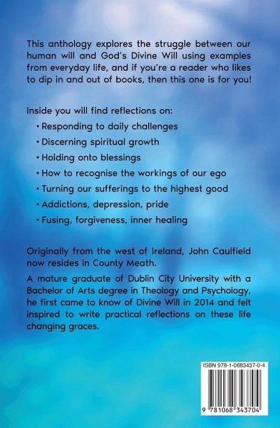 This anthology of fifty chapters explores the struggle between our human will and God's Divine Will using examples from everyday life, and if you're a reader who likes to dip in and out of books, then this one is for you! Inside you will find reflections on: Responding to daily challenges Discerning spiritual growth Holding on to blessings How to recognise the workings of our ego Turning our sufferings to the highest good Addictions, depression, pride Fusing, forgiveness, inner healing Distractions, doubt, spiritual gossip Originally from the west of Ireland, John Caulfield now resides in County Meath. A mature graduate of Dublin City University with a Bachelor of Arts degree in Theology and Psychology, he first came to know of Divine Will in 2014 and felt inspired to write practical reflections on these life changing graces.