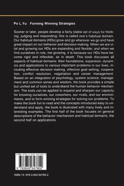 Sooner or later, people develop a fairly stable set of ways for thinking, judging and responding; this is called one's habitual domain. Our habitual domains (HDs) grow and go wherever we go and have great impact on our behavior and decision making. When we are vital and growing our HDs are expanding and flexible; and when we find ourselves in ruts, not growing, it is because our HDs have become rigid and inflexible, as in death. This book discusses all aspects of habitual domains: their foundations, expansion, dynamics and applications to various nontrivial decision problems in our lives, including effective decision making, effective goal setting, cooperation, conflict resolution, negotiation and career management. Based on an integration of psychology, system science, management and common sense and wisdom, the book provides a simple but unified set of tools in terms of habitual domains and the behavior mechanism. The tools can be applied to expand and sharpen our capacity for knowing ourselves, our coworkers, our rivals, and our environments, and to form winning strategies for solving our problems. To make the book fun to read and the concepts introduced easy to understand and apply, the book is written in plain language with many lively and interesting examples as illustrations. The first half of the book focuses on general descriptions of the behavior mechanism and habitual domains, the second half on applications.