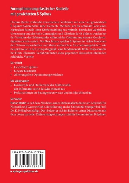 Florian Martin verbindet verschiedene Verfahren mit einer auf gewichteten B-Splines basierenden Finite-Elemente-Methode, um die optimale Form eines elastischen Bauteils unter Krafteinwirkung zu ermitteln. Durch den Wegfall der Vernetzung und die hohe Genauigkeit und Glattheit der B-Splines werden bei der Variation des Gebietsrandes während der Optimierung massive Geschwindigkeitsvorteile erzielt. Darüber hinaus spielen B-Splines in vielen Bereichen der Naturwissenschaften und ihren zahlreichen Anwendungsgebieten, wie beispielsweise in der Computergrafik, eine fundamentale Rolle. Insbesondere bei Finite-Elemente-Verfahren bieten diese gegenüber klassischen Methoden zahlreiche Vorteile.