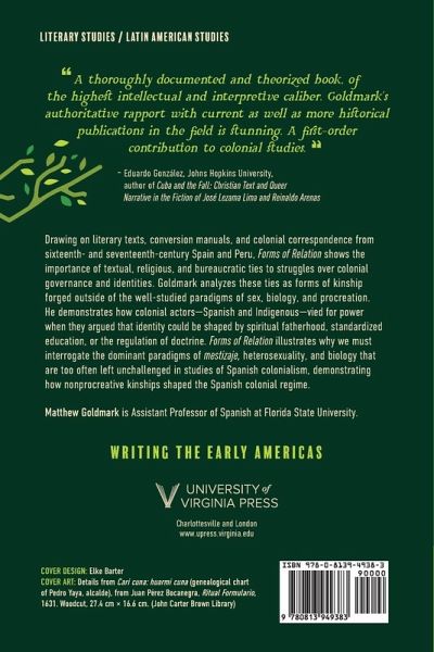 Drawing on literary texts, conversion manuals, and colonial correspondence from sixteenth- and seventeenth-century Spain and Peru, Forms of Relation focuses on nonprocreative and nonbiological kinship ties, revealing the importance of these relationships to debates and struggles over colonial governance and identities. Goldmark begins with one Dominican friar's polemic against Spanish abuses of Indigenous women's reproductive labor, which threatened to lead to maternal infanticide, the death of the Indies' populations, and the failure of evangelization. He consults texts from sixteenth-century Peru describing how Inca authorities thwarted marriages between nonelite Inca women and Spanish men in an attempt to preserve Inca political power. He uncovers Spanish and Criollo teachers' petitions, submitted in the early seventeenth century to the Archbishopric's Archive of Lima, that hoped to convince authorities that by following these petition authors' "good examples," an Indigenous person could claim Christian rights. Forms of Relation illustrates why we must and how we can interrogate the dominant paradigms of mestizaje, heterosexuality, and biology that are too often left unchallenged in studies of Spanish colonialism, demonstrating how nonprocreative kinships proved critical to the creation of that regime.