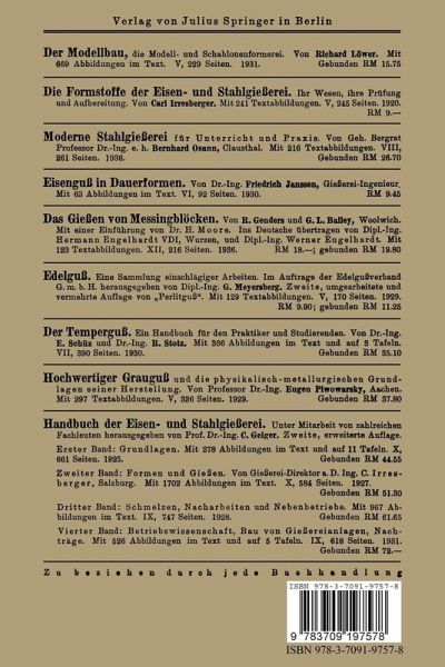 I. Formsandaufbereitung.- A. Formsand als Werkstoff.- B. Allgemeine Grundlagen der Sandaufbereitung.- C. Trocknen des Sandes.- D. Siebmaschinen und Eisenausscheider.- E. Zerkleinerungsmaschinen.- F. Sandmisch- und Auflockerungsmaschinen.- G. Mischkollergänge.- H. Sandförderung.- II. Gußputzerei.- A. Handputzwerkzeuge und -einrichtungen.- B. Maschinen für vorbereitende Arbeiten.- C. Putzen mit Säure.- D. Putztrommeln.- E. Wirkungsweise der Sandstrahlgebläse.- F. Bauarten der Sandstrahlgebläse.- G. Entstaubung der Sandstrahlgebläse.- H. Mechanische Sandstrahler.- I. Putzen mit Wasserstrahl.- III. Tabellarische Angaben über Baugrößen und Leistungen einiger ausgeführter Maschinen.