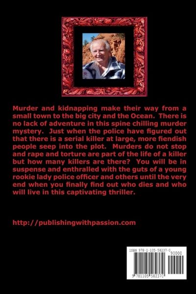 A young rookie lady police officer wants to see action. Well, she gets more than she asked for when a serial murder is at large and mutilated bodies of women are discovered. The FBI gets involved and the story moves from a small to town to San Francisco and to the stormy ocean's thunderous waves brought on by grueling storms. Boats and cars and police are not enough to keep up with murder, torture and rape. Money is one thing that is wanted but it doesn't satisfy the hunger of a psychotic killer whose friends like murder as well. Who will live and who will die is the question that is answered only as you read through till the end. This thriller will have you spell bound.