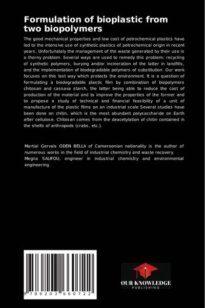 The good mechanical properties and low cost of petrochemical plastics have led to the intensive use of synthetic plastics of petrochemical origin in recent years. Unfortunately the management of the waste generated by their use is a thorny problem. Several ways are used to remedy this problem: recycling of synthetic polymers, burying and/or incineration of the latter in landfills, and the implementation of biodegradable polymers of substitution. Our work focuses on this last way which protects the environment. It is a question of formulating a biodegradable plastic film by combination of biopolymers chitosan and cassava starch, the latter being able to reduce the cost of production of the material and to improve the properties of the former and to propose a study of technical and financial feasibility of a unit of manufacture of the plastic films on an industrial scale Several studies have been done on chitin, which is the most abundant polysaccharide on Earth after cellulose. Chitosan comes from the deacetylation of chitin contained in the shells of arthropods (crabs, etc.).