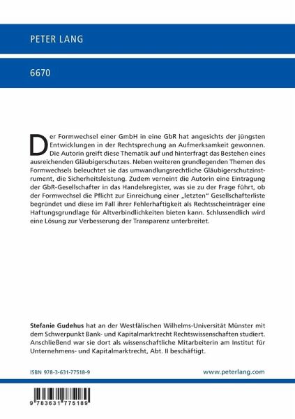 Der Formwechsel einer GmbH in eine GbR hat angesichts der jüngsten Entwicklungen in der Rechtsprechung an Aufmerksamkeit gewonnen. Die Autorin greift diese Thematik auf und hinterfragt das Bestehen eines ausreichenden Gläubigerschutzes. Neben weiteren grundlegenden Themen des Formwechsels beleuchtet sie das umwandlungsrechtliche Gläubigerschutzinstrument, die Sicherheitsleistung. Zudem verneint die Autorin eine Eintragung der GbR-Gesellschafter in das Handelsregister, was sie zu der Frage führt, ob der Formwechsel die Pflicht zur Einreichung einer "letzten" Gesellschafterliste begründet und diese im Fall ihrer Fehlerhaftigkeit als Rechtsscheinträger eine Haftungsgrundlage für Altverbindlichkeiten bieten kann. Schlussendlich wird eine Lösung zur Verbesserung der Transparenz unterbreitet.