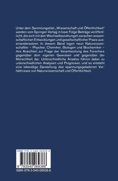1m Juni 1971 hatte das Weizmann-Institut, die berlihmte intematio nale Forschungsstatte des Landes Israel, zu einem Symposium unter dem Titel "The Impact of Science on Society" nach Brlissel einge laden. Wahrend zweier Tage versuchten Wissenschaftler die Situ ation unserer heutigen, durch die Wissenschaft veriinderten Welt zu analysieren. Man fragte sich, welchen Nutzen uns die Wissenschaft gebracht habe und wohin sie uns fUhre. Stellt die Wissenschaft die hochste Ausformung des menschlichen Geistes, die groBte Kultur leistung dar? Wie weit geht die Verantwortung des Forschers fUr die Resultate seiner Forschung? Welches ist die Rolle der Wissen schaft in einer klinftigen Gesellschaft? In ihren Referaten gaben die Forscher hochst individuelle und origi nelle Antworten zu diesem Thema. Der vollstandige W ortlaut des Symposiums wurde 1973 von A. R. MICHAELIS und H. HARVEY unter dem Titel "Scientists in Search of their Conscience" beim Springer-Verlag Berlin - Heidelberg - New York veroffentlicht. Die hiervorliegende deutsche Ausgabe habe ichaus dieser Originalausgabe stark liberarbeitet und durch einftihrende Zwischenkapitel erganzt. Dr. A. R. MICHAELIS, London, Dr. JOSEF COHN und Frau RENATE V. BAMBERG, Europaisches Komitee des Weizmann-Instituts, ZUrich, danke ich fUr die Zusammenarbeit und Hilfe bei der Abfassung der deutschen Ausgabe. Dr. DIETER GAUSS, Gottingen, und Dr. HARALD K. WIEBKING, Springer-Verlag Heidelberg, bin ich fUr die redak tionelle Bearbeitung des Manuskripts verbunden. Gottingen, im Sommer 1974 F. CRAMER Inhaltsverzeichnis Einftihrung: Wissenschaft und Gesellschaft in unserer Zeit FRIEDRICH CRAMER . . . . . . . . . . .
