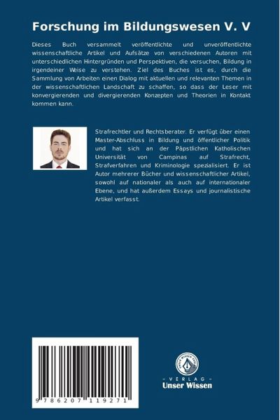 Dieses Buch versammelt veröffentlichte und unveröffentlichte wissenschaftliche Artikel und Aufsätze von verschiedenen Autoren mit unterschiedlichen Hintergründen und Perspektiven, die versuchen, Bildung in irgendeiner Weise zu verstehen. Ziel des Buches ist es, durch die Sammlung von Arbeiten einen Dialog mit aktuellen und relevanten Themen in der wissenschaftlichen Landschaft zu schaffen, so dass der Leser mit konvergierenden und divergierenden Konzepten und Theorien in Kontakt kommen kann.