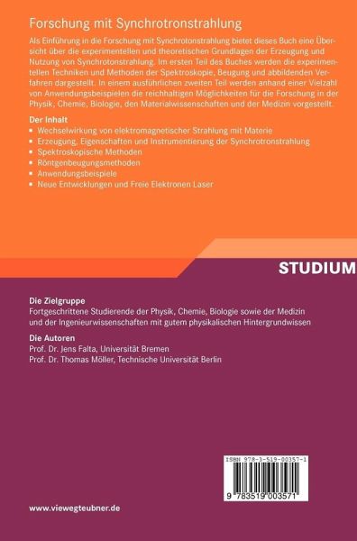 Als Einführung in die Forschung mit Synchrotonstrahlung bietet dieses Buch zunächst eine Übersicht über die experimentellen und theoretischen Grundlagen der Erzeugung und Nutzung von Synchrotonstrahlung. In diesem Teil werden die experimentellen Techniken und Methoden der Spektroskopie, Beugung und abbildenden Verfahren dargestellt. In einem ausführlichen zweiten Teil werden anhand einer Vielzahl von Anwendungsbeispielen die reichhaltigen Möglichkeiten für die Forschung in der Physik, Chemie und Medizin vorgestellt.
